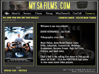 Oh yeah, my original thought. David Hernandez is a young videographer from San Antonio. He contacted me from my website http://www.bestcheapsites.com/ to find out if I could make him a website and how much. He sent me his MySpace link and I checked him out first.